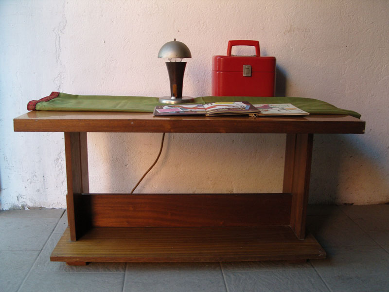 Stolik kawowy, ława, stolik okolicznościowy z lat 70. Wymiary: wysokość 51 cm, szerokość 100 cm, głębokość 55 cm.